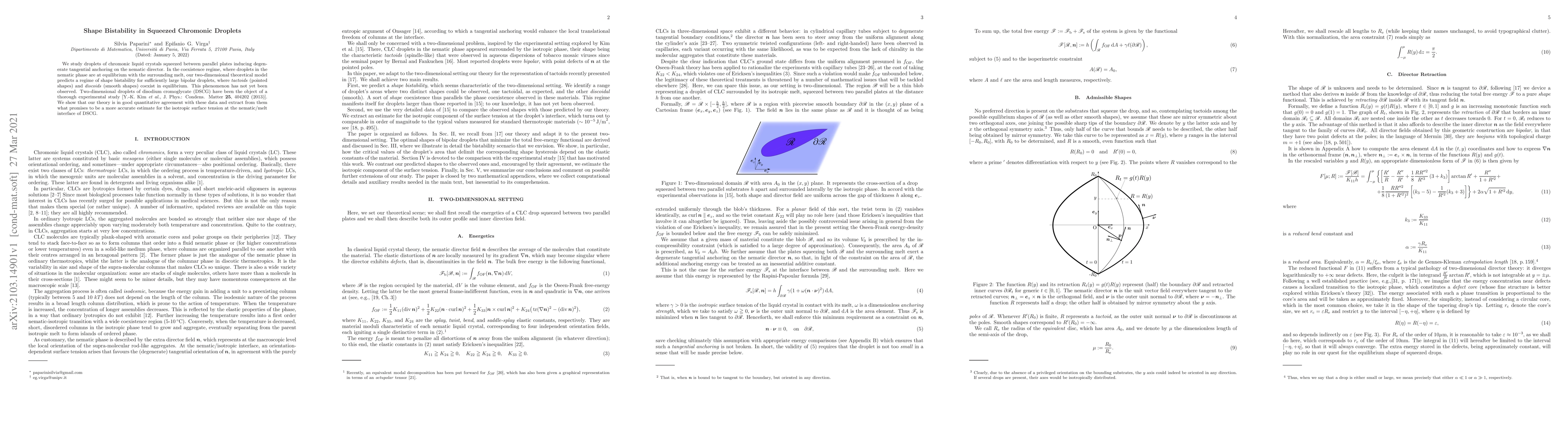 The paper introduces a theoretical framework for predicting equilibrium shapes of squeezed chromonic liquid crystal droplets, incorporating a special family of admissible droplet profiles amenable to analytical treatment.