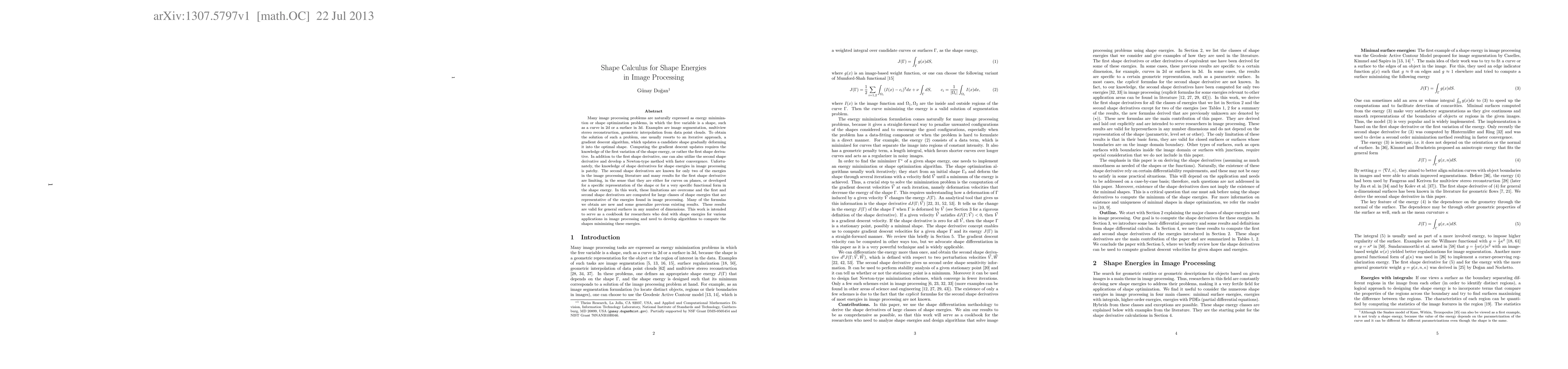 This research computes first and second shape derivatives for numerous shape energies in image processing, applicable to general surfaces in any dimensions. Results are novel and generalize existing ones, aiming to serve as a guide for developing shape minimization algorithms.
