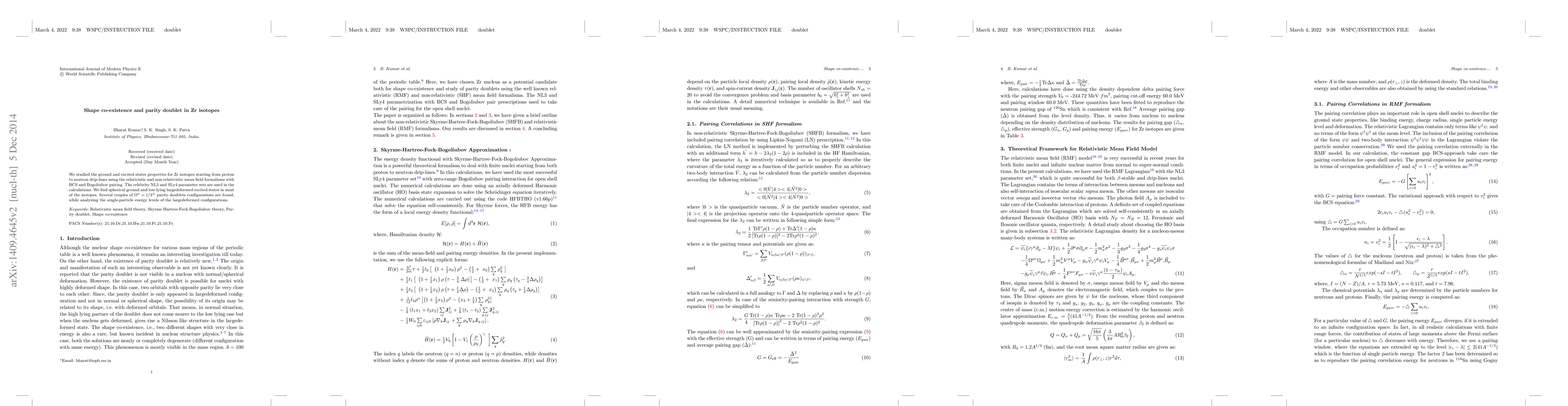 This study examines Zr isotopes' ground and excited states using mean field formalisms, identifying spherical ground states and superdeformed excited states. Parity doublet configurations are discovered, particularly in single-particle energy levels of superdeformed configurations.