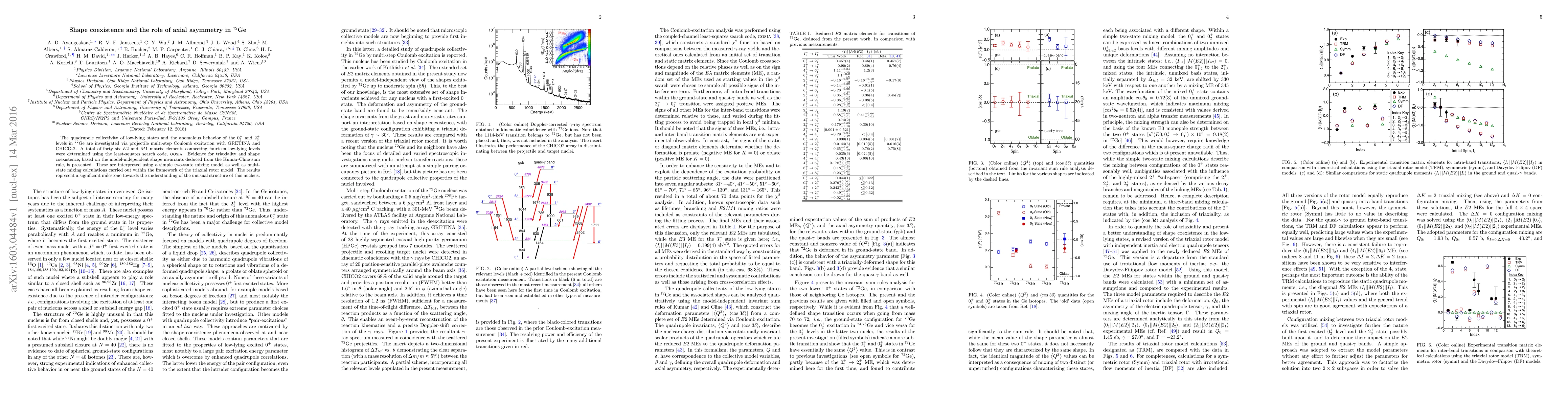 The quadrupole collectivity of low-lying states and the anomalous behavior of the $0^+_2$ and $2^+_3$ levels in $^{72}$Ge are investigated via projectile multi-step Coulomb excitation with GRETINA and CHICO-2. A total of forty six $E2$ and $M1$ matrix elements connecting fourteen low-lying levels were determined using the least-squares search code, gosia. Evidence for triaxiality and shape coexistence, based on the model-independent shape invariants deduced from the Kumar-Cline sum rule, is presented. These are interpreted using a simple two-state mixing model as well as multistate mixing calculations carried out within the framework of the triaxial rotor model. The results represent a significant milestone towards the understanding of the unusual structure of this nucleus.