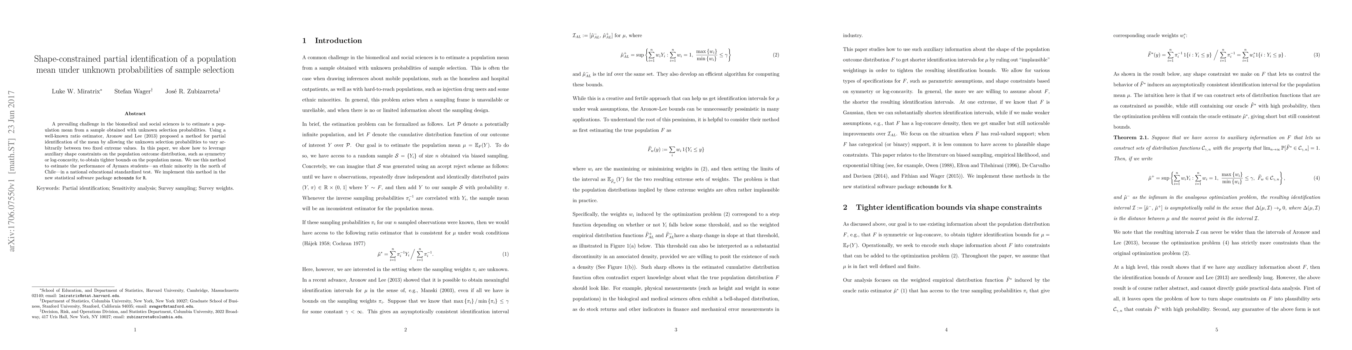 Researchers developed a method to estimate population means from samples with unknown selection probabilities, using auxiliary shape constraints to improve accuracy. The approach was tested on Aymara students in Chile, providing a novel solution for estimating population parameters under uncertainty.
