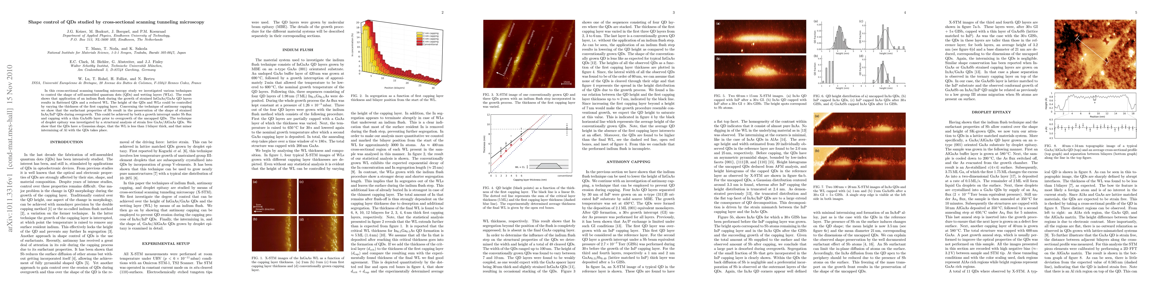 This study explores techniques to control the shape of self-assembled quantum dots (QDs) using cross-sectional scanning tunneling microscopy, revealing that indium flush flattens InGaAs/GaAs QDs and antimony capping preserves the shape of InAs/InP QDs. Additionally, droplet epitaxy results in Gaussian-shaped GaAs/AlGaAs QDs with minimal intermixing.
