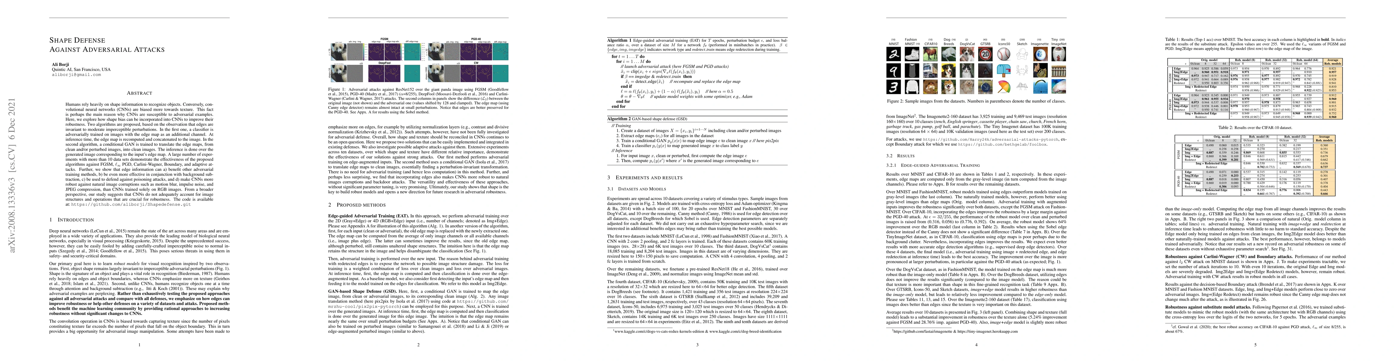 This paper proposes two algorithms to enhance CNN robustness against adversarial attacks by incorporating shape information through edge maps. The first algorithm trains a classifier on edge-augmented images, and the second uses a conditional GAN to translate edge maps into clean images. Experiments show improved robustness against various attacks and natural image corruptions.
