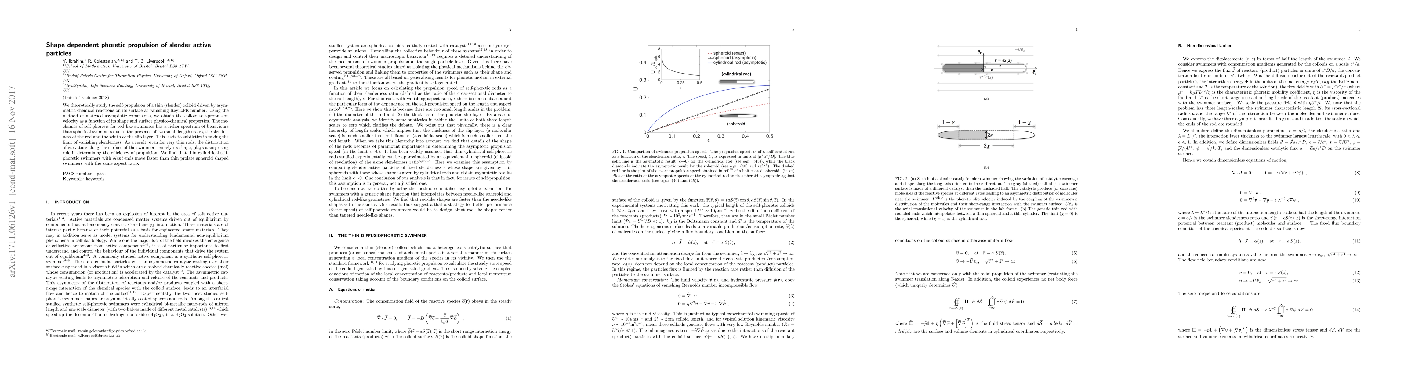 The paper presents a detailed asymptotic analysis of phoretic propulsion for slender particles, providing a comprehensive understanding of how shape influences self-propulsion velocity.