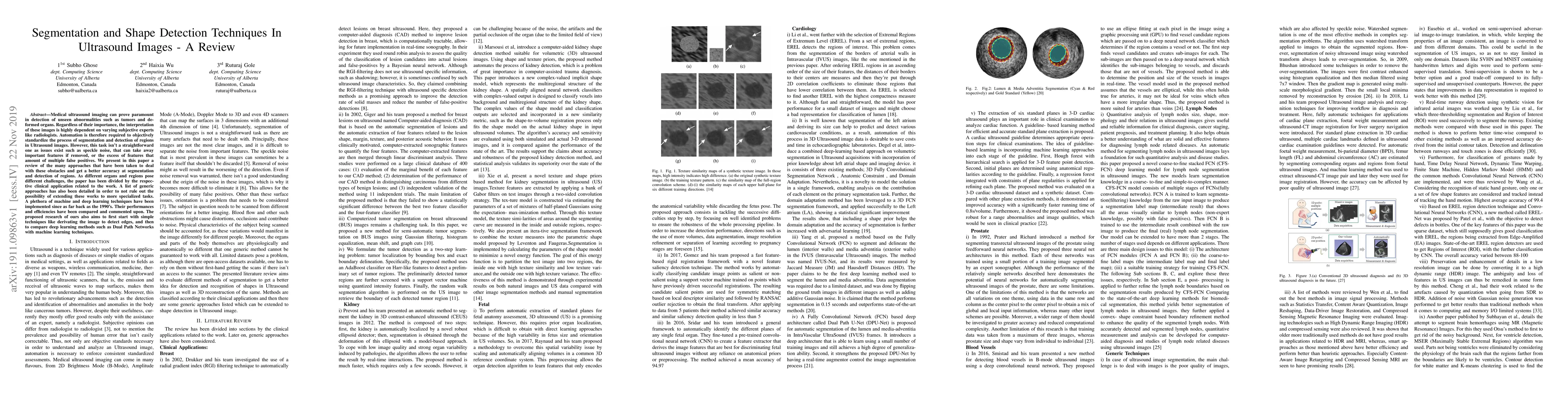 Ultrasound images are one of the most widely used techniques in clinical settings to analyze and detect different organs for study or diagnoses of diseases. The dependence on subjective opinions of experts such as radiologists calls for an automatic recognition and detection system that can provide an objective analysis. Previous work done on this topic is limited and can be classified by the organ of interest. Hybrid neural networks, linear and logistic regression models, 3D reconstructed models, and various machine learning techniques have been used to solve complex problems such as detection of lesions and cancer. Our project aims to use Dual Path Networks (DPN) to segment and detect shapes in ultrasound images taken from 3D printed models of the liver. Further the DPN deep architectures could be coupled with Fully Convolutional Network (FCN) to refine the results. Data denoised with various filters would be used to gauge how they fare against each other and provide the best results. Small amount of dataset works with DPNs, and hence, that should be appropriate for us as our dataset shall be limited in size. Moreover, the ultrasound scans shall need to be taken from different orientations of the scanner with respect to the organ, such that the training dataset can accurately perform segmentation and shape detection.