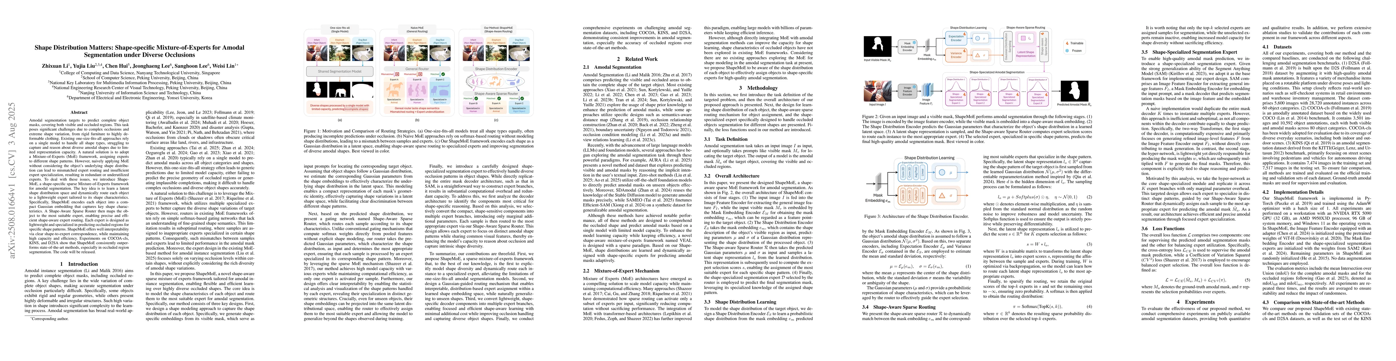 The research introduces ShapeMoE, a shape-specific Mixture-of-Experts framework for amodal segmentation, addressing challenges in handling diverse object shapes under occlusions. ShapeMoE learns a latent shape distribution and dynamically routes objects to specialized experts, improving occluded region segmentation on benchmarks like COCOA-cls, KINS, and D2SA, outperforming existing methods.