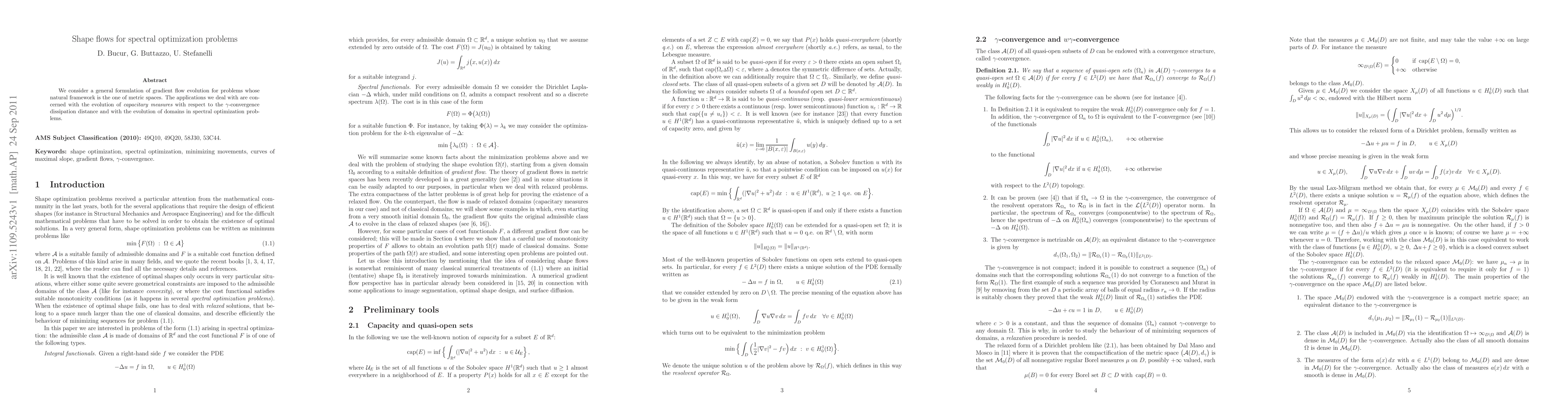 This paper explores gradient flow evolution in metric spaces, focusing on the evolution of capacitary measures and domains in spectral optimization problems, utilizing the $\gamma$-convergence dissipation distance.