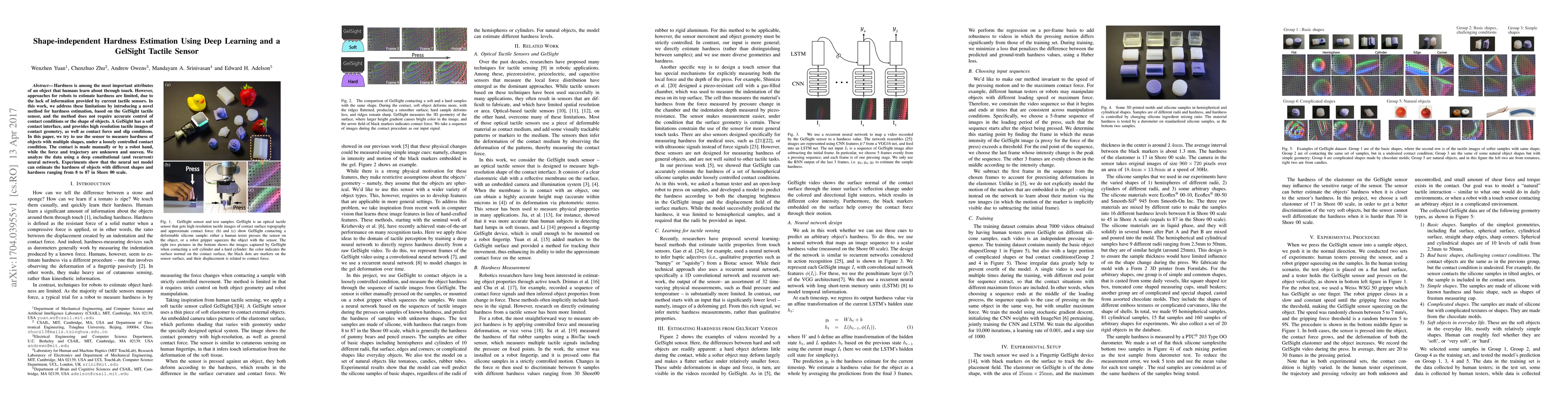 Hardness is among the most important attributes of an object that humans learn about through touch. However, approaches for robots to estimate hardness are limited, due to the lack of information provided by current tactile sensors. In this work, we address these limitations by introducing a novel method for hardness estimation, based on the GelSight tactile sensor, and the method does not require accurate control of contact conditions or the shape of objects. A GelSight has a soft contact interface, and provides high resolution tactile images of contact geometry, as well as contact force and slip conditions. In this paper, we try to use the sensor to measure hardness of objects with multiple shapes, under a loosely controlled contact condition. The contact is made manually or by a robot hand, while the force and trajectory are unknown and uneven. We analyze the data using a deep constitutional (and recurrent) neural network. Experiments show that the neural net model can estimate the hardness of objects with different shapes and hardness ranging from 8 to 87 in Shore 00 scale.