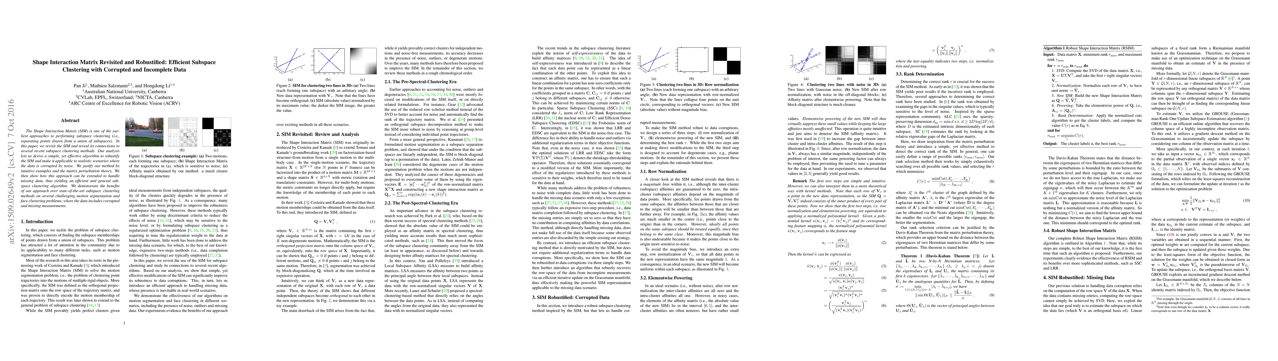 This paper revisits the Shape Interaction Matrix (SIM) for subspace clustering, revealing its connections to recent methods and presenting a robustified version that can handle noisy and incomplete data. The proposed algorithm is shown to outperform state-of-the-art methods on motion segmentation and face clustering tasks with corrupted and missing data.