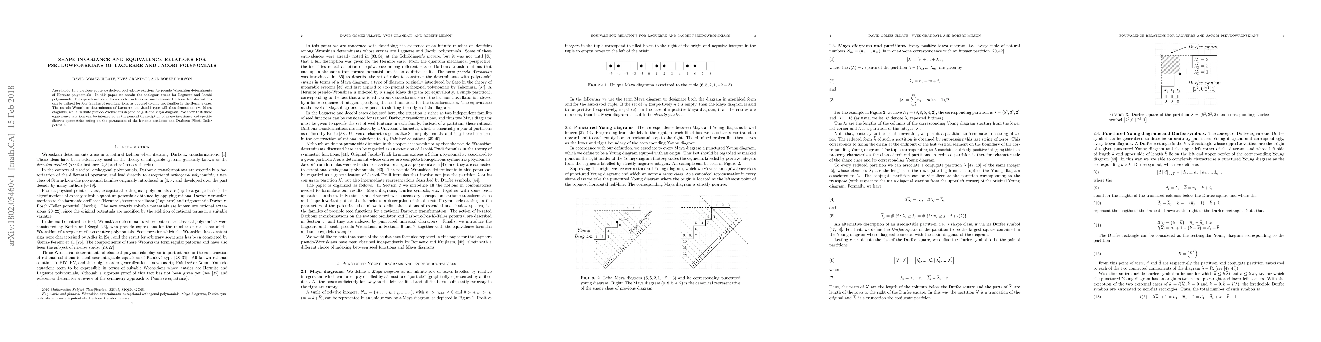 This paper extends previous results on equivalence relations for pseudo-Wronskian determinants to Laguerre and Jacobi polynomials, revealing richer structure due to four families of seed functions. The findings demonstrate the general transcription of shape invariance and discrete symmetries in these polynomial systems.