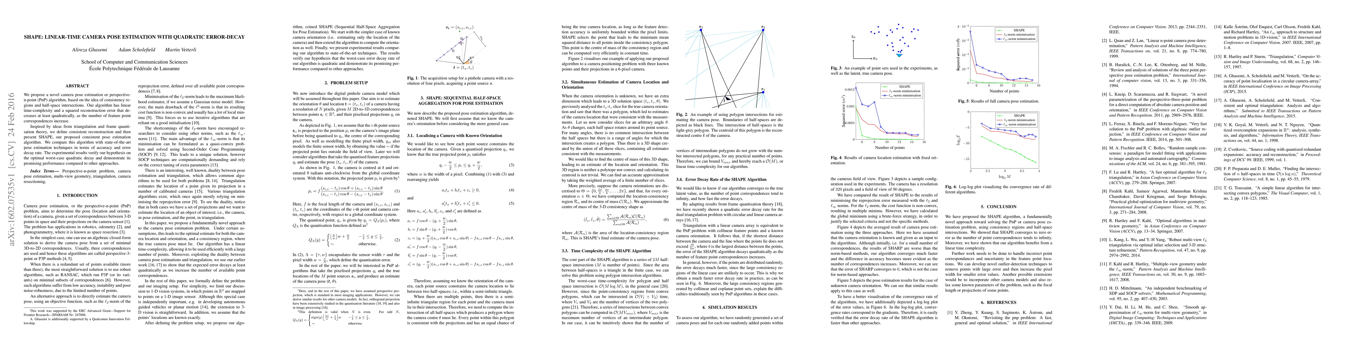 This paper introduces SHAPE, a novel camera pose estimation algorithm with linear time-complexity and quadratic error-decay, based on consistency regions and half-space intersections. Experimental results show superior performance compared to state-of-the-art methods in terms of accuracy and error decay rate.