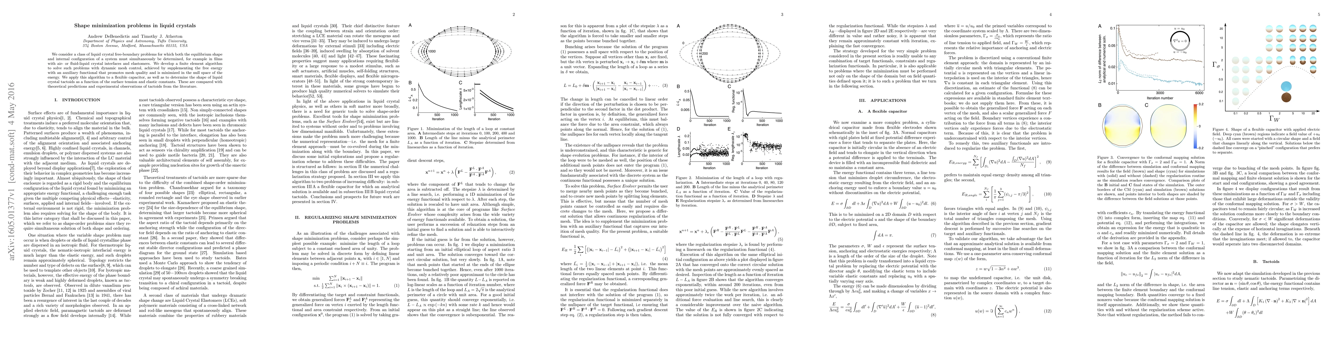 This research introduces a finite element algorithm with dynamic mesh control to solve complex liquid crystal free-boundary problems. It's applied to flexible capacitors and liquid crystal tactoid shape determination, comparing results with theoretical predictions and experiments.