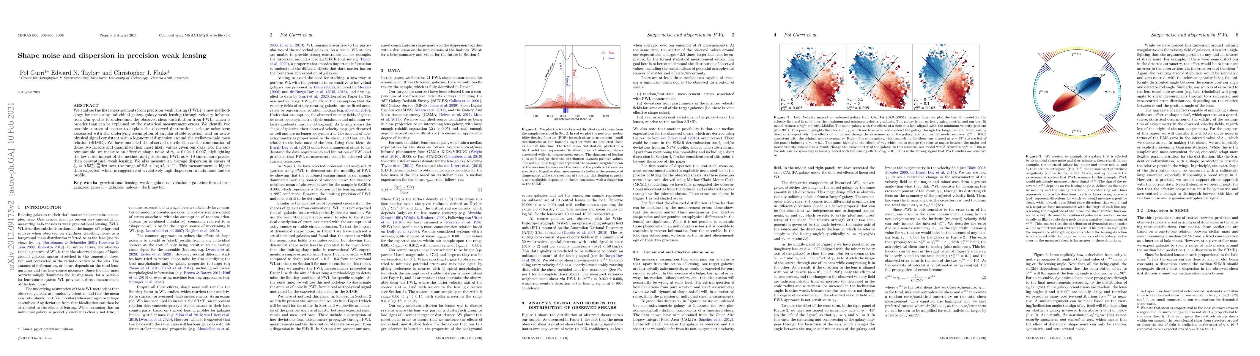We analyse the first measurements from precision weak lensing (PWL): a new methodology for measuring individual galaxy-galaxy weak lensing through velocity information. Our goal is to understand the observed shear distribution from PWL, which is broader than can be explained by the statistical measurement errors. We identify two possible sources of scatter to explain the observed distribution: a shape noise term associated with the underlying assumption of circular stable rotation, and an astrophysical signal consistent with a log-normal dispersion around the stellar-to-halo mass relation (SHMR). We have modelled the observed distribution as the combination of these two factors and quantified their most likely values given our data. For the current sample, we measure an effective shape noise of $\sigma_\gamma = 0.024 \pm 0.007$, highlighting the low noise impact of the method and positioning PWL as $\sim 10$ times more precise than conventional weak lensing. We also measure an average dispersion in shears of $\xi_\gamma = 0.53^{+0.26}_{-0.28}$\,dex over the range of $8.5 < \log M_\star < 11$. This measurement is higher than expected, which is suggestive of a relatively high dispersion in halo mass and/or profile.