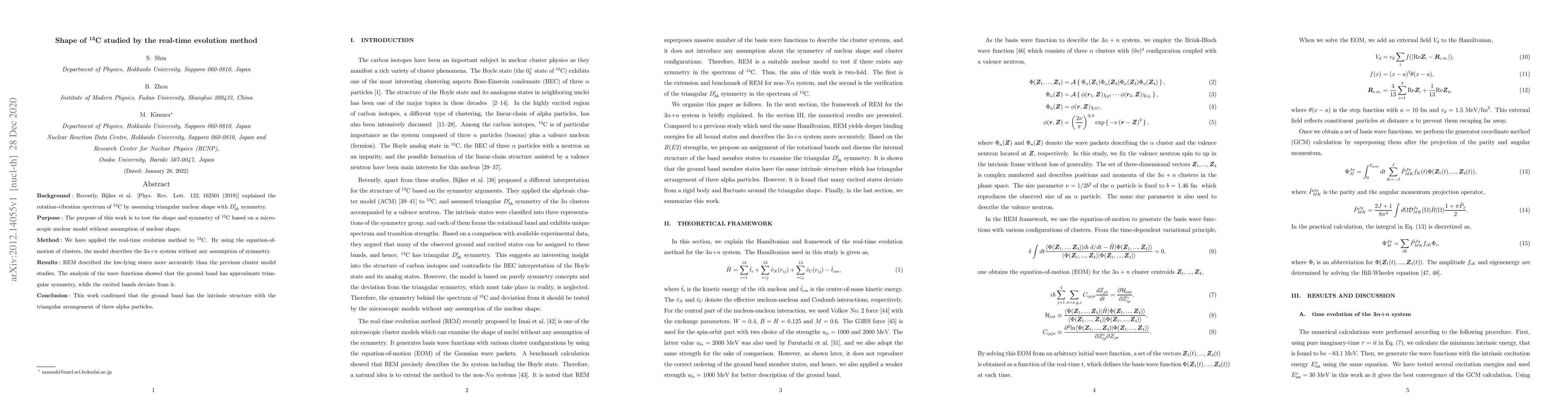 Researchers used a new method to study the shape of 13C and found that it has a triangular arrangement of three alpha particles in its ground state, deviating from this symmetry in excited states.