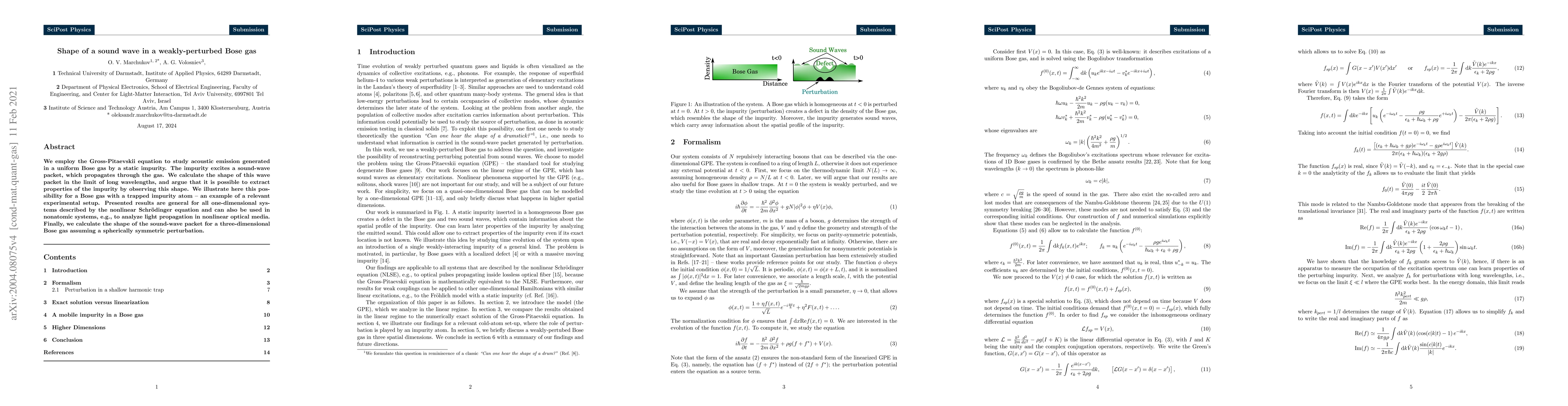 The paper presents a detailed mathematical analysis of sound wave propagation in Bose gases using the Gross-Pitaevskii equation, extending the findings to one-dimensional systems and nonlinear optical media.