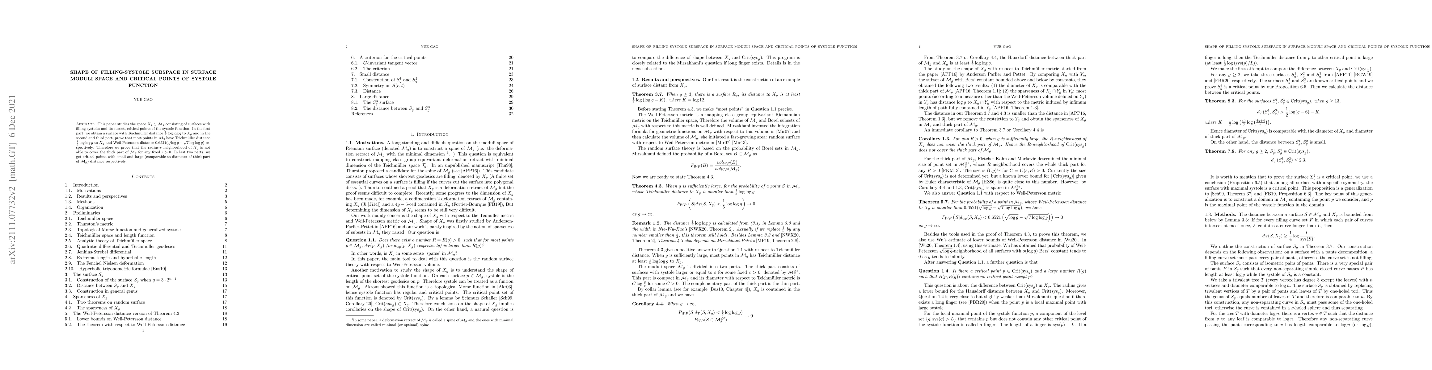 This paper explores the shape of a specific subspace, $X_g$, within the moduli space of surfaces, $mathcal{M}_g$, focusing on 'filling systoles'. It demonstrates that most points in $mathcal{M}_g$ are at a certain Teichmüller and Weil-Petersson distance from $X_g$, proving that no radius-r neighborhood around $X_g$ can cover the thick part of $mathcal{M}_g$. The study also identifies critical points of the systole function with small and large distances relative to the thick part's diameter.
