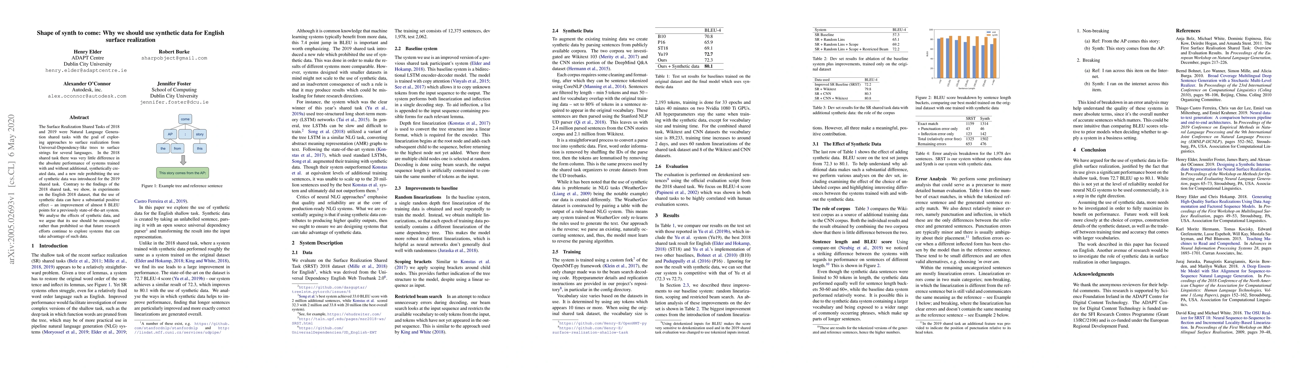 The Surface Realization Shared Tasks of 2018 and 2019 were Natural Language Generation shared tasks with the goal of exploring approaches to surface realization from Universal-Dependency-like trees to surface strings for several languages. In the 2018 shared task there was very little difference in the absolute performance of systems trained with and without additional, synthetically created data, and a new rule prohibiting the use of synthetic data was introduced for the 2019 shared task. Contrary to the findings of the 2018 shared task, we show, in experiments on the English 2018 dataset, that the use of synthetic data can have a substantial positive effect - an improvement of almost 8 BLEU points for a previously state-of-the-art system. We analyse the effects of synthetic data, and we argue that its use should be encouraged rather than prohibited so that future research efforts continue to explore systems that can take advantage of such data.