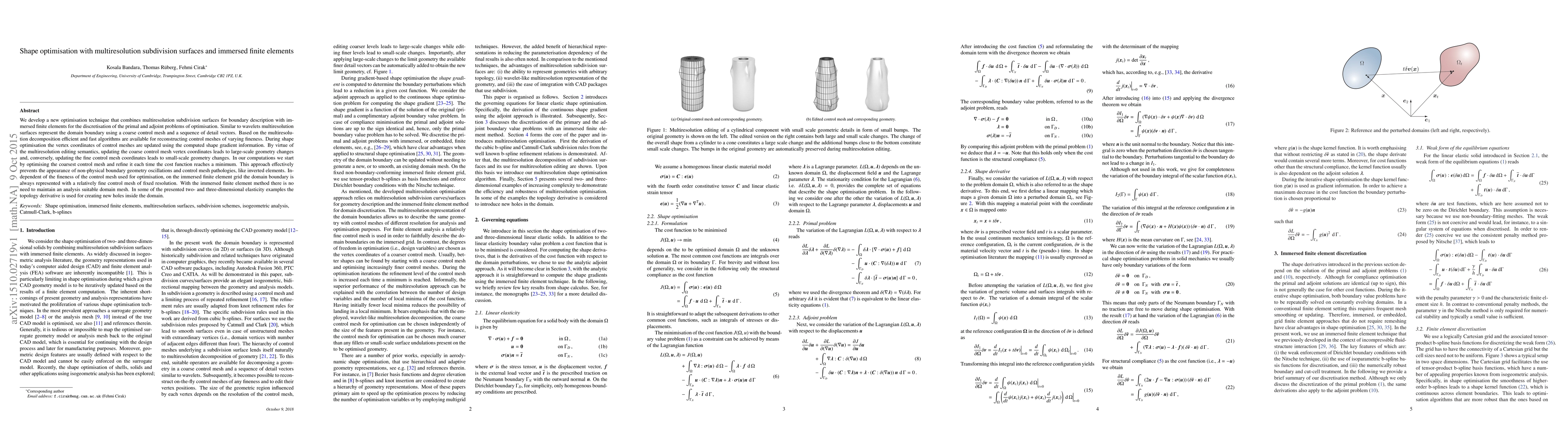 This paper presents a novel optimisation technique that merges multiresolution subdivision surfaces for boundary representation with immersed finite elements for discretisation. The method efficiently updates control mesh vertices based on shape gradient information, refining coarse meshes progressively to avoid non-physical oscillations and control mesh pathologies.