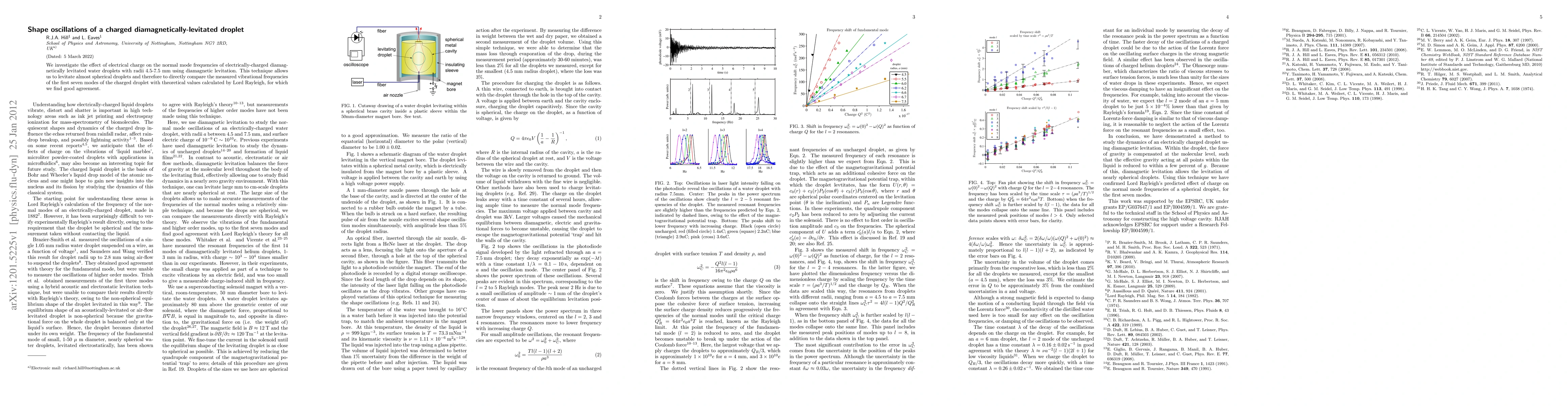 This study examines how electrical charge influences the normal mode frequencies of diamagnetically levitated water droplets, finding strong agreement between measured vibrational frequencies and theoretical predictions by Lord Rayleigh. The use of diamagnetic levitation allows for precise control and analysis of droplet shape oscillations.