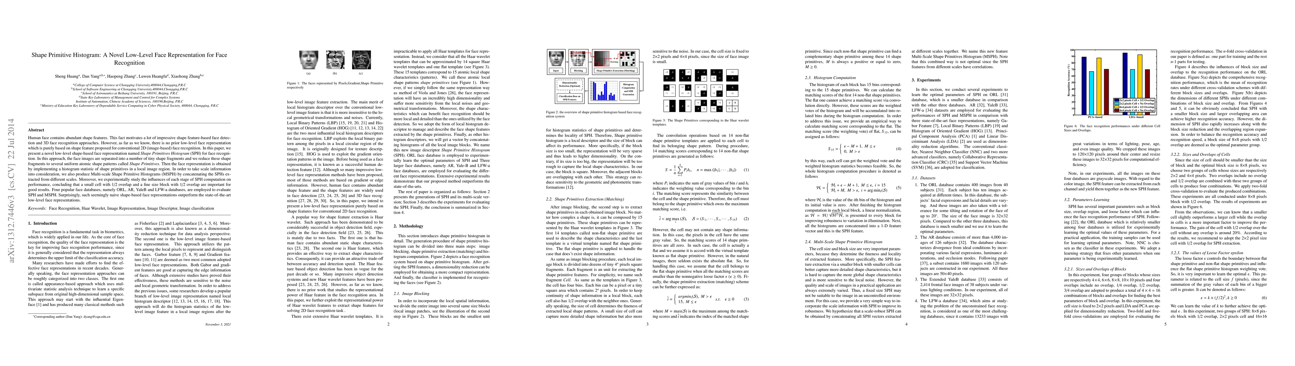 The paper introduces Shape Primitive Histogram (SPH), a novel low-level face representation using Haar wavelet for face recognition, which extracts shape features by dividing faces into shape fragments and identifying them with Haar Wavelet templates, then concatenating local histograms to form a feature vector. Experimental results show SPH outperforms existing methods on multiple face databases.