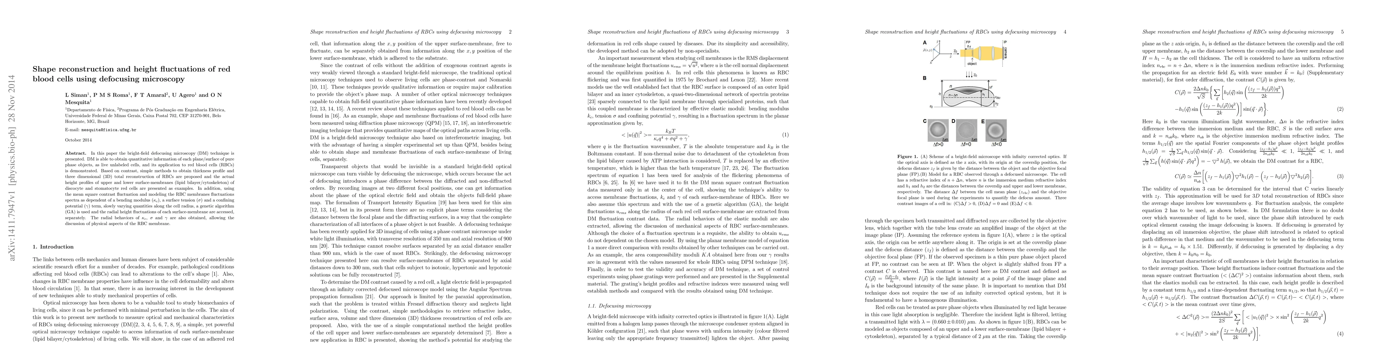 Researchers used a microscopy technique called defocusing microscopy to study the shape and structure of red blood cells, revealing new insights into their membrane properties and height fluctuations.