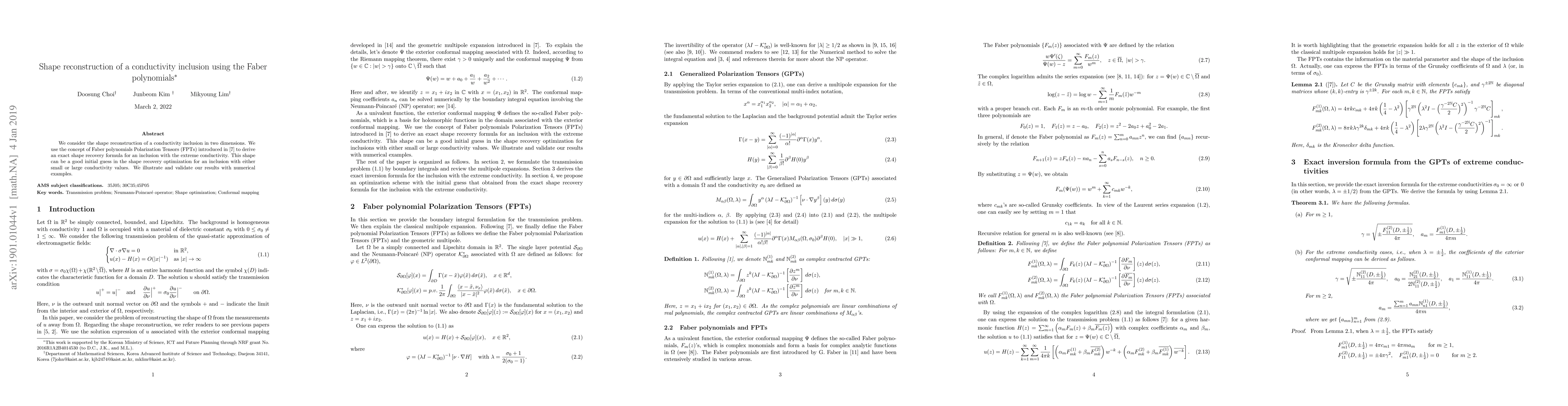We consider the shape reconstruction of a conductivity inclusion in two dimensions. We use the concept of Faber polynomials Polarization Tensors (FPTs) introduced in \cite{choi:2018:GME} to derive an exact shape recovery formula for an inclusion with the extreme conductivity. This shape can be a good initial guess in the shape recovery optimization for an inclusion with either small or large conductivity values. We illustrate and validate our results with numerical examples.
