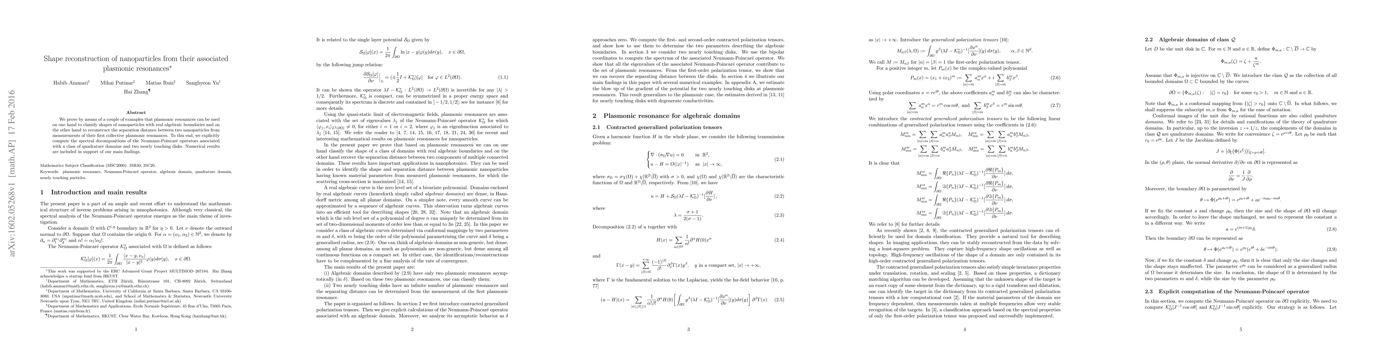 Researchers demonstrate that plasmonic resonances can be used to classify nanoparticles with real boundaries and reconstruct their separation distance from measurements.