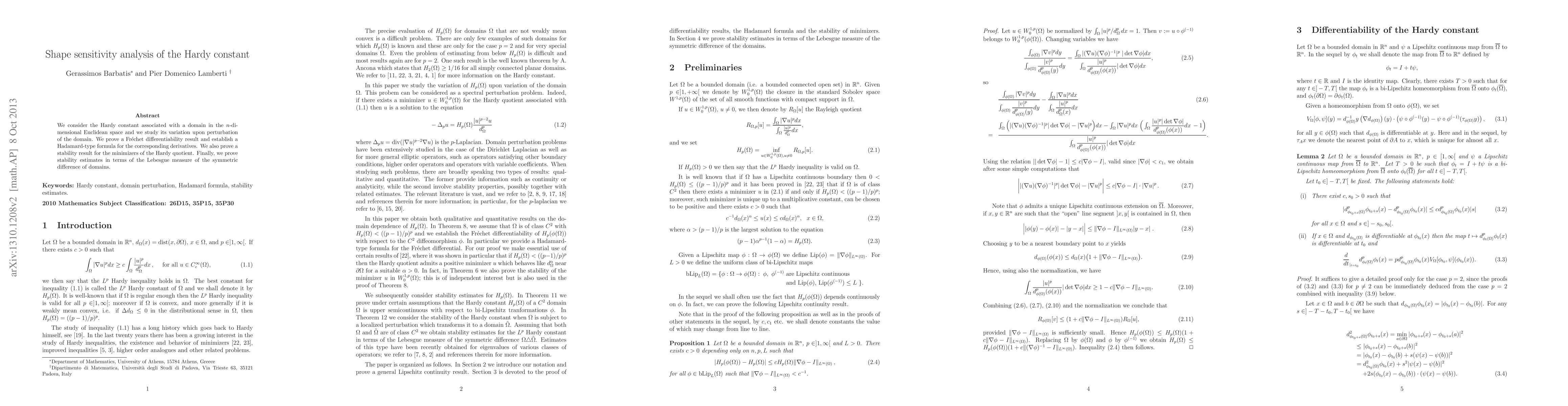 This paper studies how changes in a domain affect its Hardy constant, establishing formulas for derivatives and stability estimates based on domain properties.