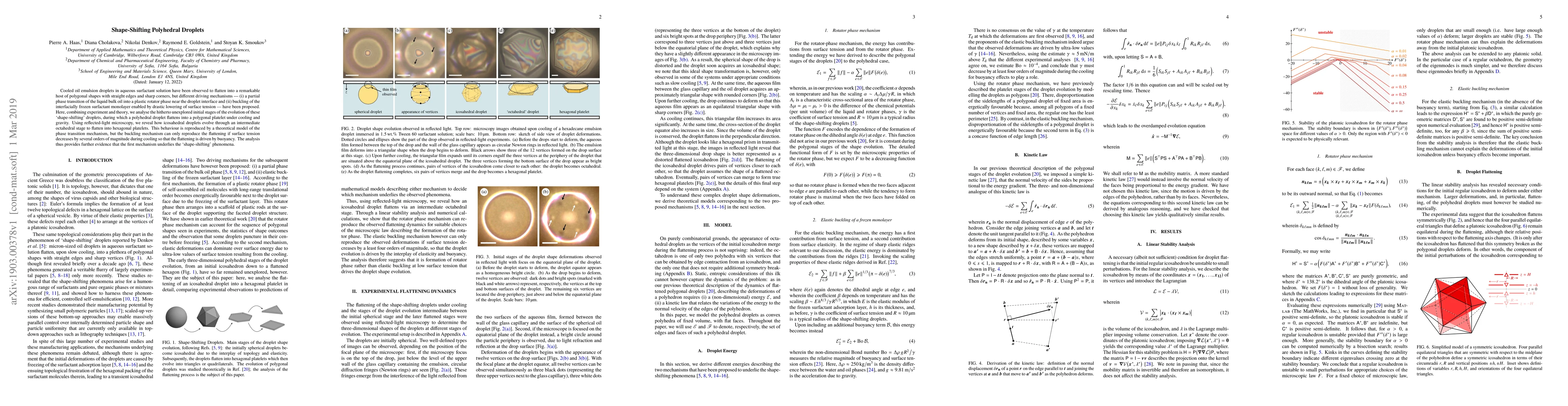 Cooled oil emulsion droplets in aqueous surfactant solution have been observed to flatten into a remarkable host of polygonal shapes with straight edges and sharp corners, but different driving mechanisms - (i) a partial phase transition of the liquid bulk oil into a plastic rotator phase near the droplet interface and (ii) buckling of the interfacially frozen surfactant monolayer enabled by drastic lowering of surface tension - have been proposed. Here, combining experiment and theory, we analyse the hitherto unexplored initial stages of the evolution of these 'shape-shifting' droplets, during which a polyhedral droplet flattens into a polygonal platelet under cooling and gravity. Using reflected-light microscopy, we reveal how icosahedral droplets evolve through an intermediate octahedral stage to flatten into hexagonal platelets. This behaviour is reproduced by a theoretical model of the phase transition mechanism, but the buckling mechanism can only reproduce the flattening if surface tension decreases by several orders of magnitude during cooling so that the flattening is driven by buoyancy. The analysis thus provides further evidence that the first mechanism underlies the 'shape-shifting' phenomena.