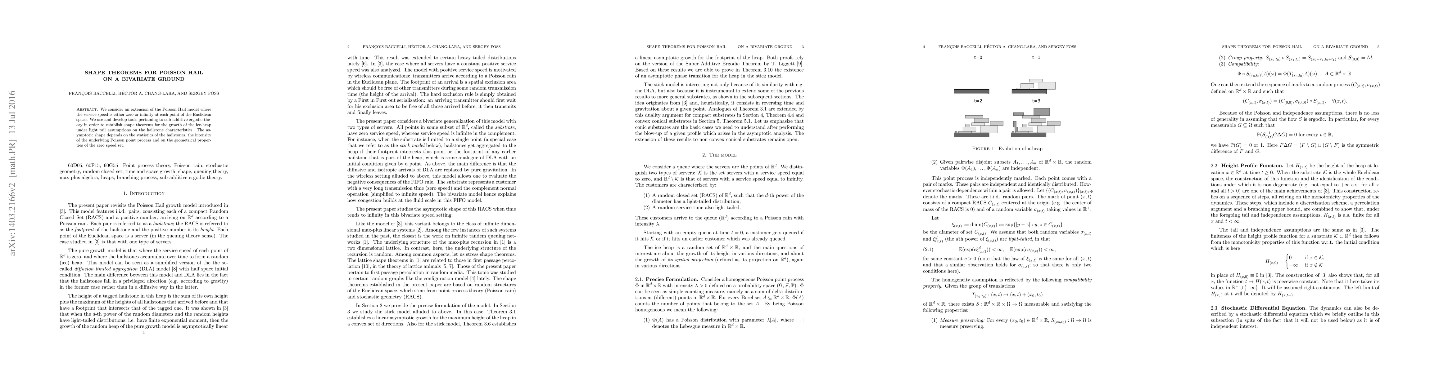 Researchers developed shape theorems for a Poisson Hail model with varying service speeds, establishing the growth of ice-heap in relation to hailstone characteristics and geometric properties.
