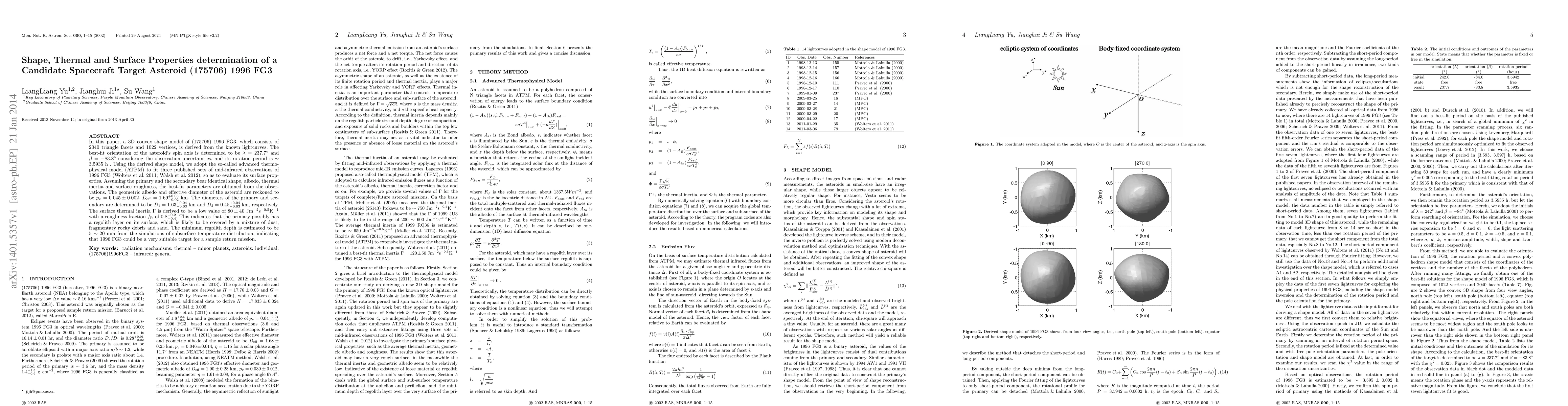 This study determines the 3D shape model of asteroid (175706) 1996 FG3, extracting its surface properties, including diameter, albedo, and thermal inertia, which suggest a regolith layer on its primary surface, making it a suitable target for sample return missions.