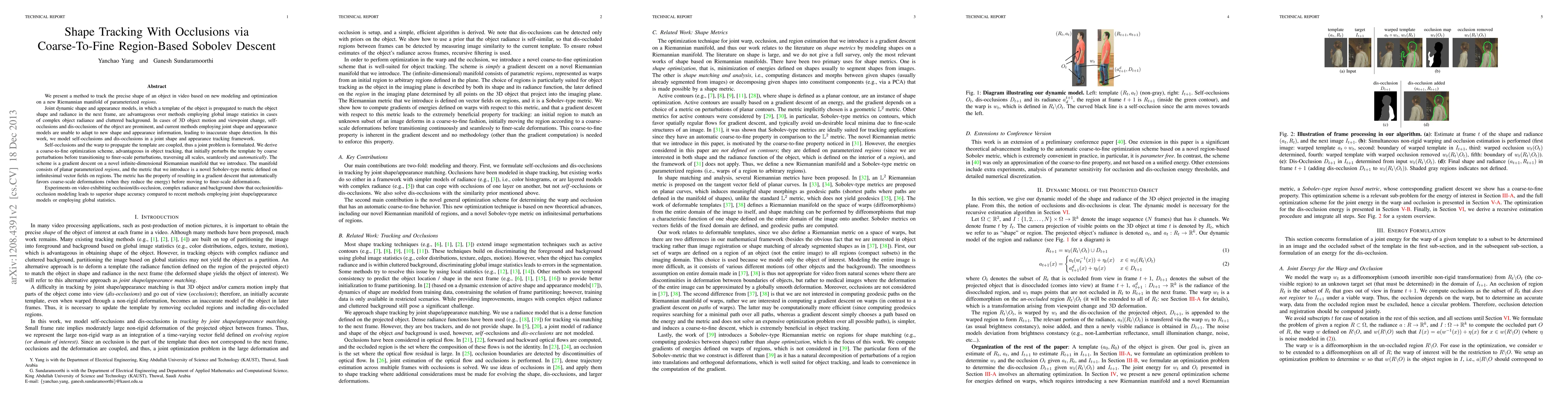 Researchers developed a method to track precise object shapes in videos with occlusions, using a novel Riemannian manifold-based optimization scheme that favors coarse-scale deformations, leading to improved shape accuracy.