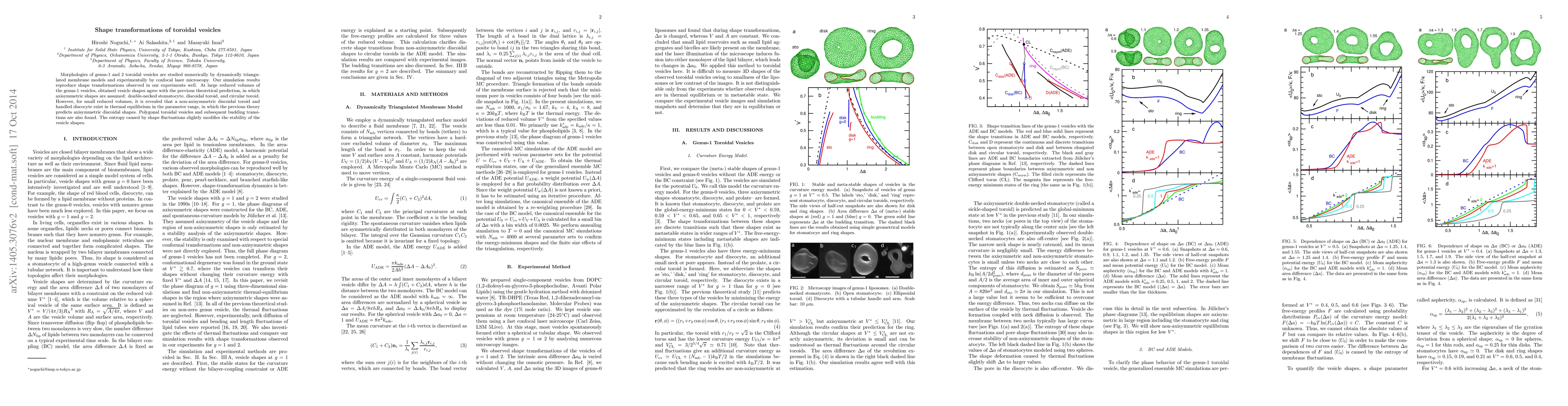 This research investigates the shape transformations of toroidal vesicles using numerical simulations and confocal microscopy, revealing non-axisymmetric shapes and polygonal forms not predicted by previous theories. The study finds that vesicle stability is slightly influenced by entropy from shape fluctuations.