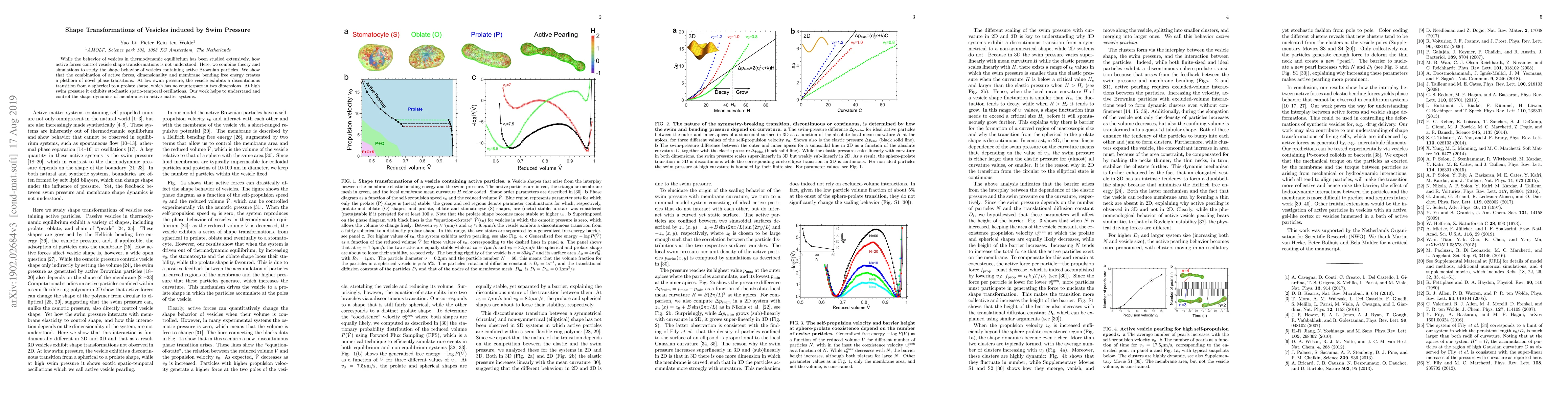 This paper combines theoretical and simulation approaches to explore how active forces induce vesicle shape transformations, revealing novel phase transitions driven by swim pressure, including a unique transition from spherical to prolate shape at low pressure and stochastic oscillations at high pressure. The findings enhance understanding of membrane dynamics in active-matter systems.