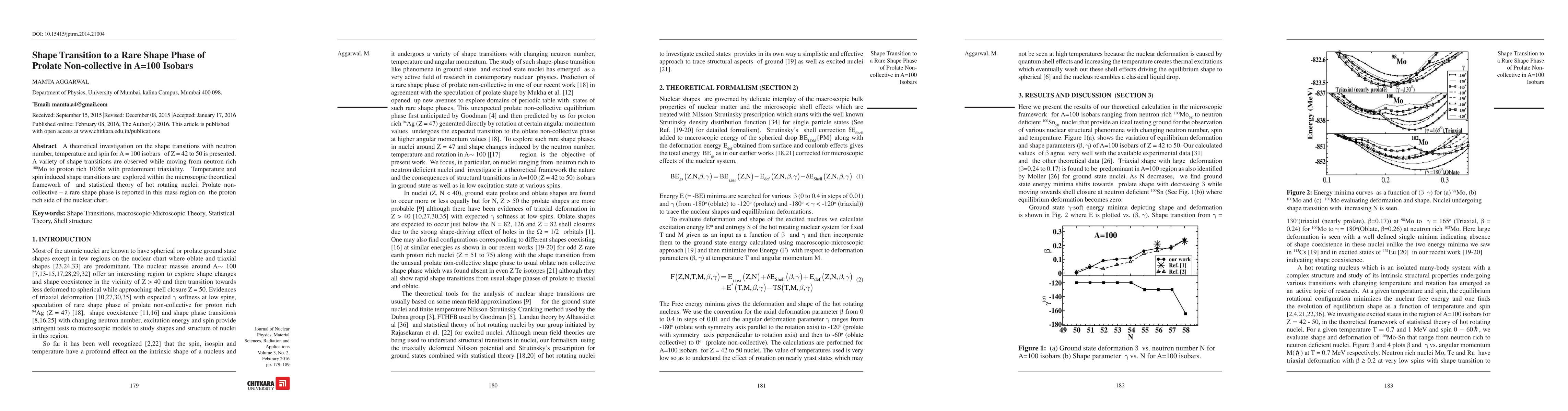 Researchers studied shape transitions in nuclei with 100 protons and found a rare prolate non-collective phase, exploring the effects of temperature, spin, and neutron number on nuclear shape.