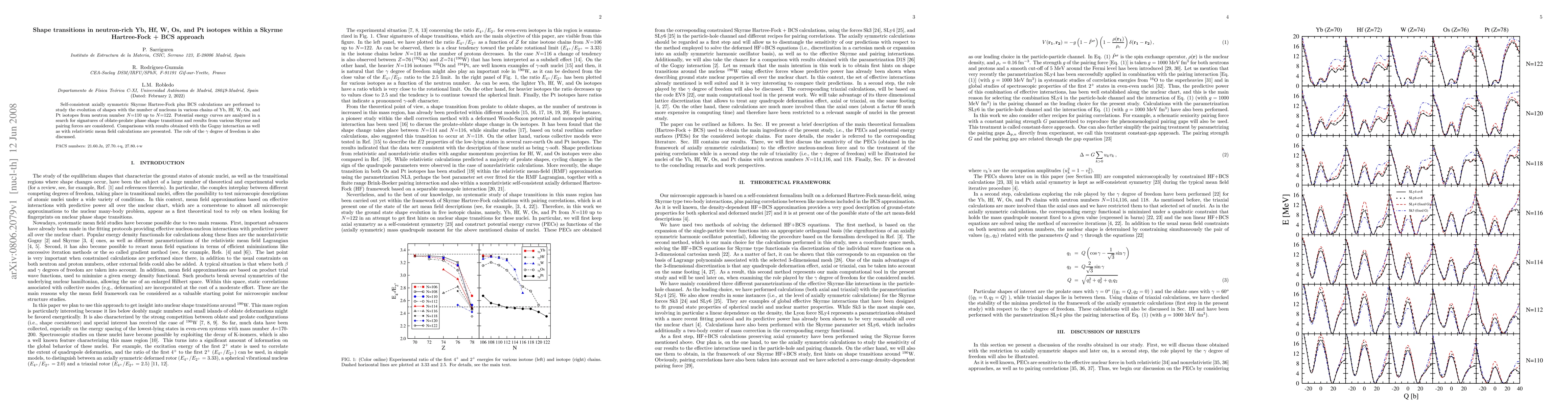 This paper investigates shape transitions in neutron-rich Yb, Hf, W, Os, and Pt isotopes using Skyrme Hartree-Fock + BCS calculations, focusing on the evolution of shapes from N=110 to N=122. It analyzes potential energy curves for oblate-prolate phase transitions and compares results with Gogny and relativistic mean field calculations, highlighting the significance of the $\gamma$ degree of freedom.