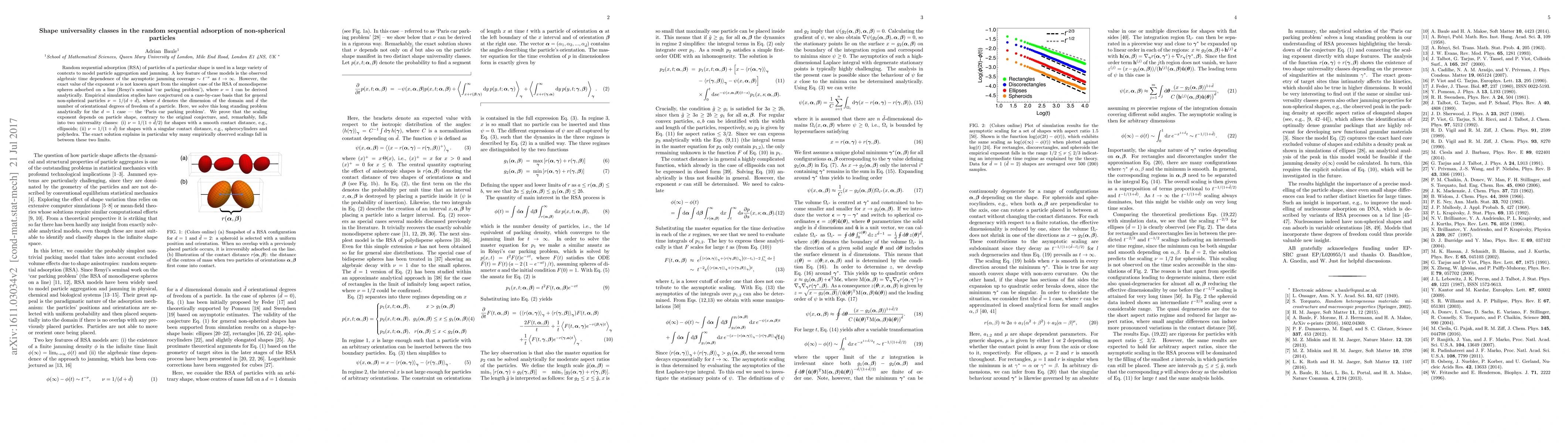 This paper analytically solves the random sequential addition (RSA) model for non-spherical particles constrained to a line, revealing two universality classes for the asymptotic jamming coverage scaling exponent $\nu$. The exponent depends on particle shape and is $\nu=1/(1+\tilde{d}/2)$ for smooth convex shapes and $\nu=1/(1+\tilde{d})$ for shapes with flat sides.