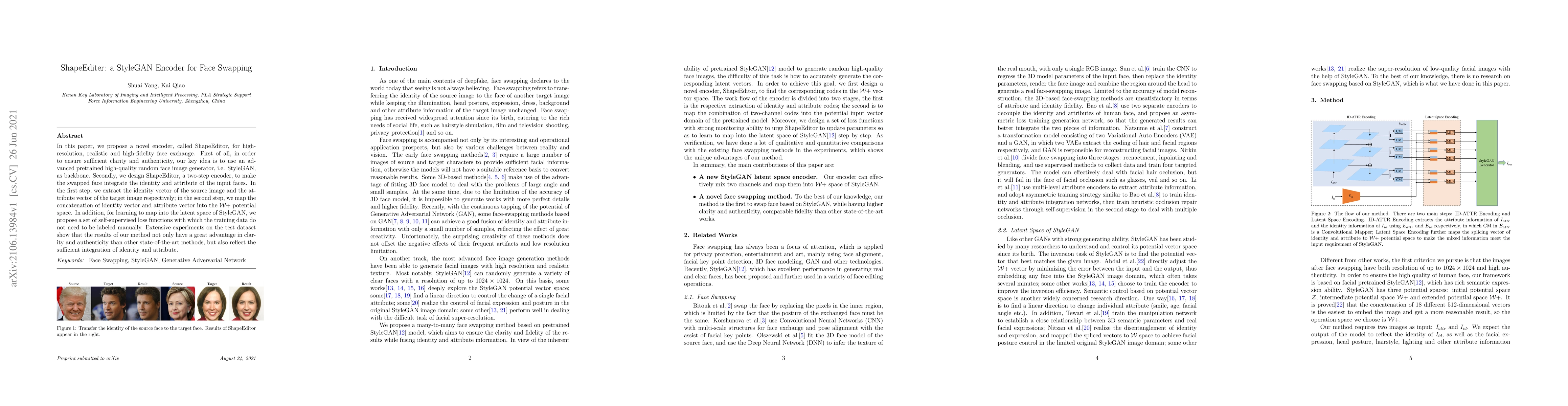 Researchers propose ShapeEditor, a StyleGAN encoder for realistic face swapping that integrates identity and attribute, outperforming state-of-the-art methods in clarity and authenticity.