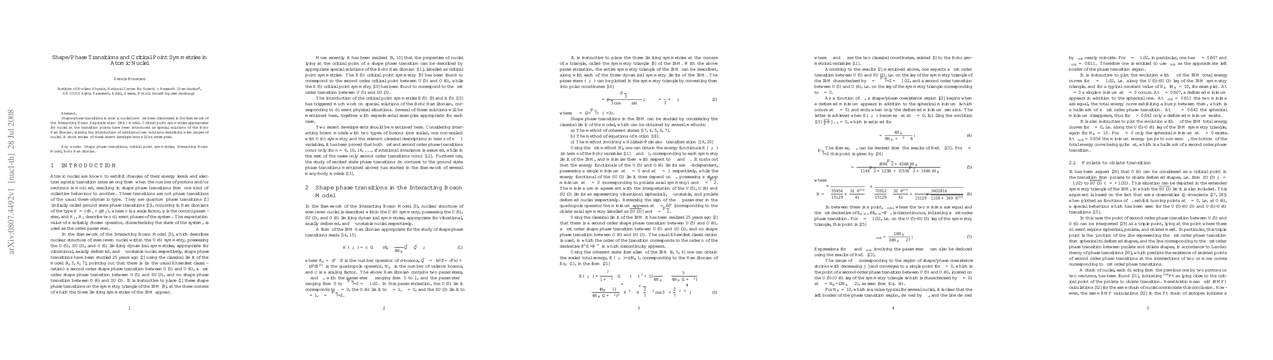 This paper reviews the discoveries of shape/phase transitions in atomic nuclei using the Interacting Boson Approximation model, and explores critical point symmetries that characterize nuclei at transition points, introducing new solutions to describe diverse nuclear behaviors.