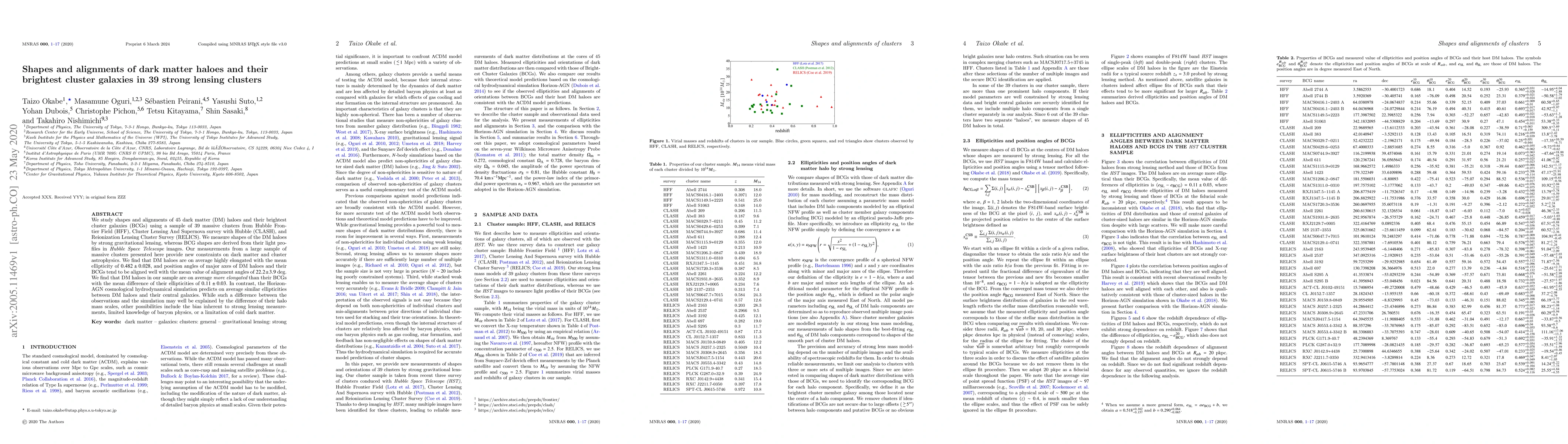 This paper investigates the shapes and alignments of 45 dark matter haloes and their brightest cluster galaxies in 39 massive clusters, finding that DM haloes are highly elongated and their major axes tend to align with those of their BCGs. The observed ellipticities differ significantly from predictions by simulations, suggesting potential issues with current cosmological models or measurement biases.