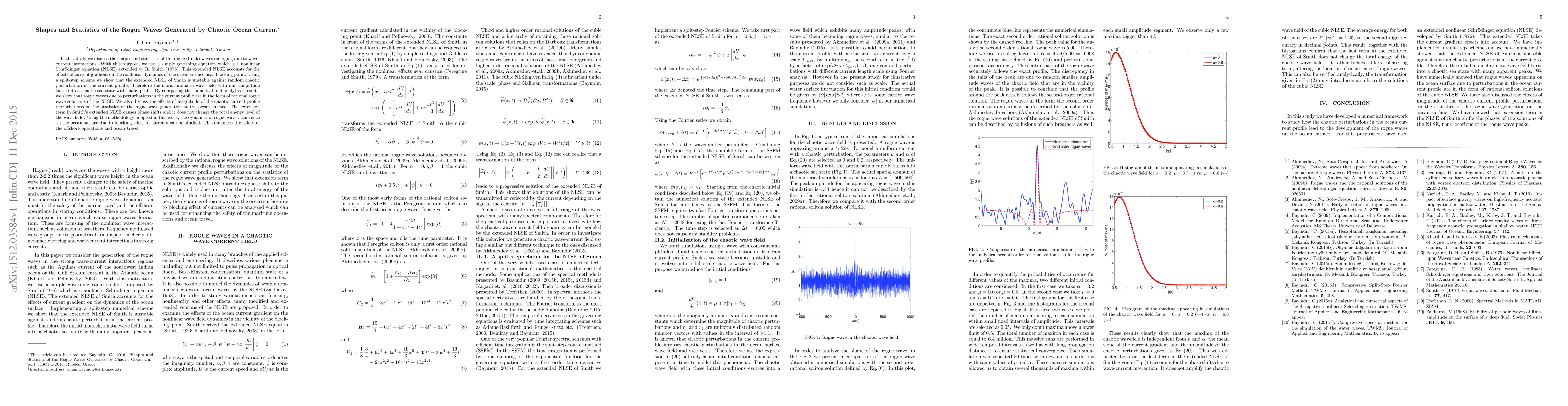 Researchers studied rogue waves generated by chaotic ocean currents, finding that they can create chaotic sea states with many peaks, and that these waves follow specific patterns similar to rational rogue wave solutions.