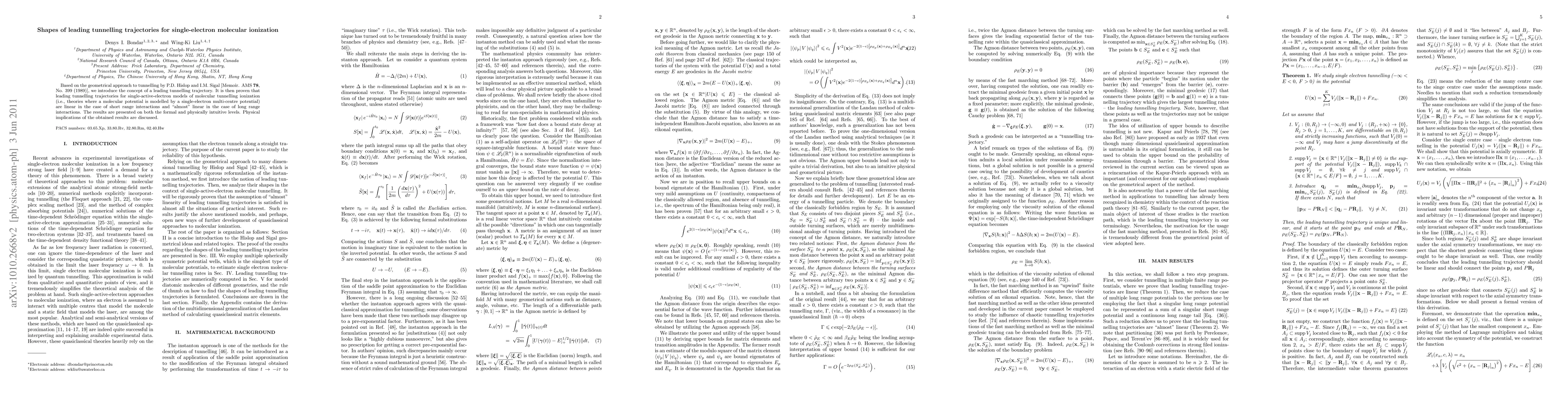 This paper introduces the concept of leading tunnelling trajectories in the context of single-electron molecular ionization, proving they are linear for short-range interactions and nearly linear for long-range interactions. The findings are discussed both formally and intuitively, with implications for understanding molecular ionization processes.