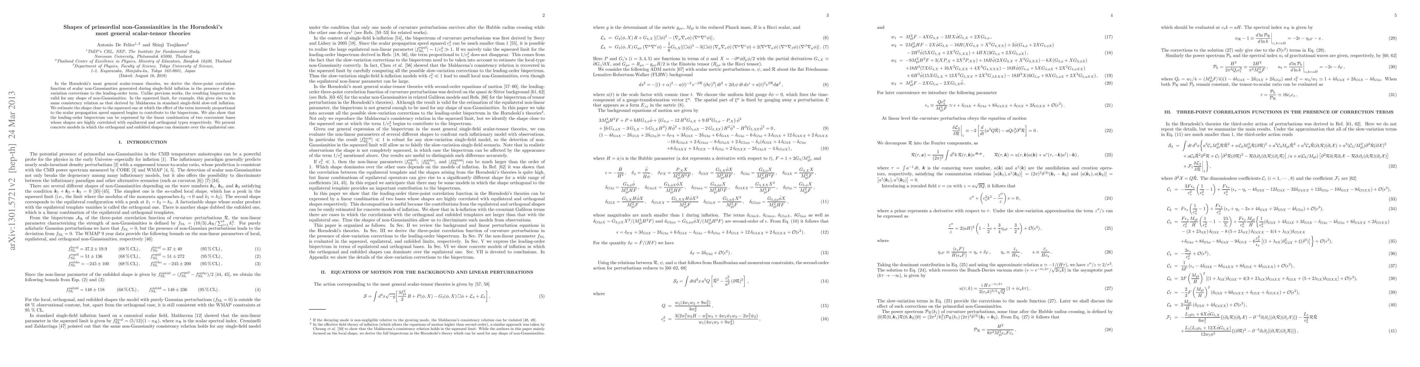 This paper derives the three-point correlation function for scalar non-Gaussianities in Horndeski's scalar-tensor theories, showing a bispectrum valid for any non-Gaussian shape and estimating the effect of corrections to the leading-order term. It also presents models where orthogonal and enfolded shapes dominate over the equilateral one.