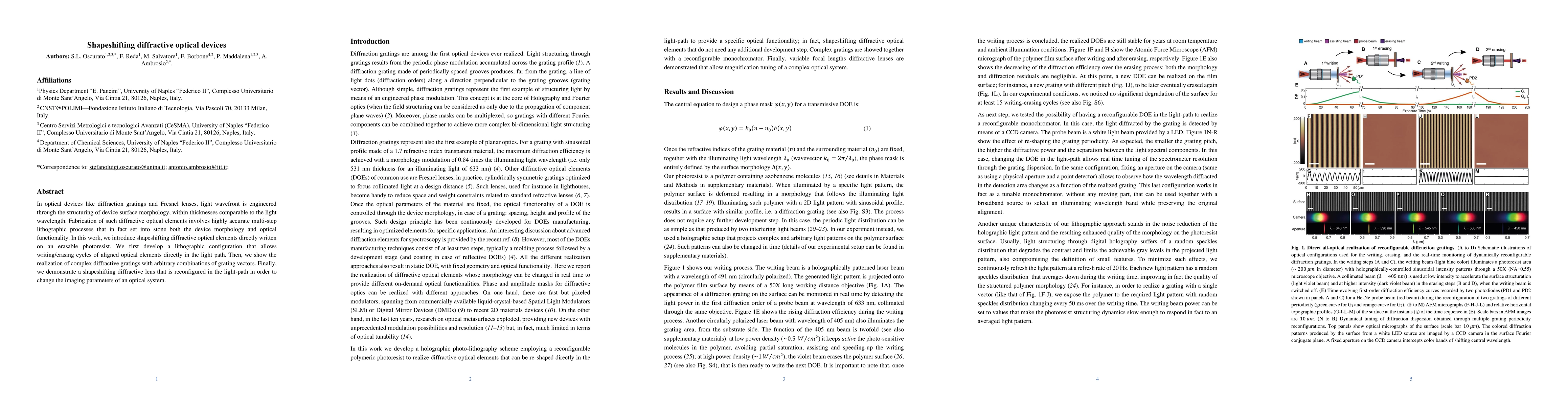 Researchers developed shapeshifting diffractive optical elements that can be written and erased using an erasable photoresist, enabling the creation of complex gratings and lenses with adjustable imaging parameters.
