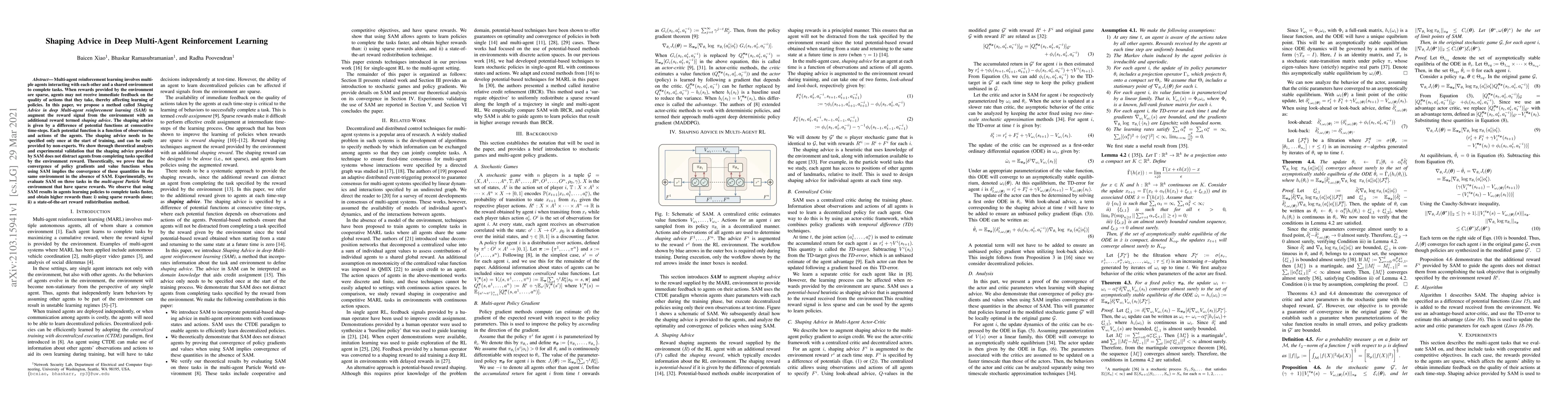 This paper proposes Shaping Advice in deep Multi-agent Reinforcement Learning (SAM) to enhance sparse reward signals with shaping advice, facilitating faster policy learning. Theoretical and experimental results confirm that SAM aids in quicker task completion without detracting from the primary environment reward.