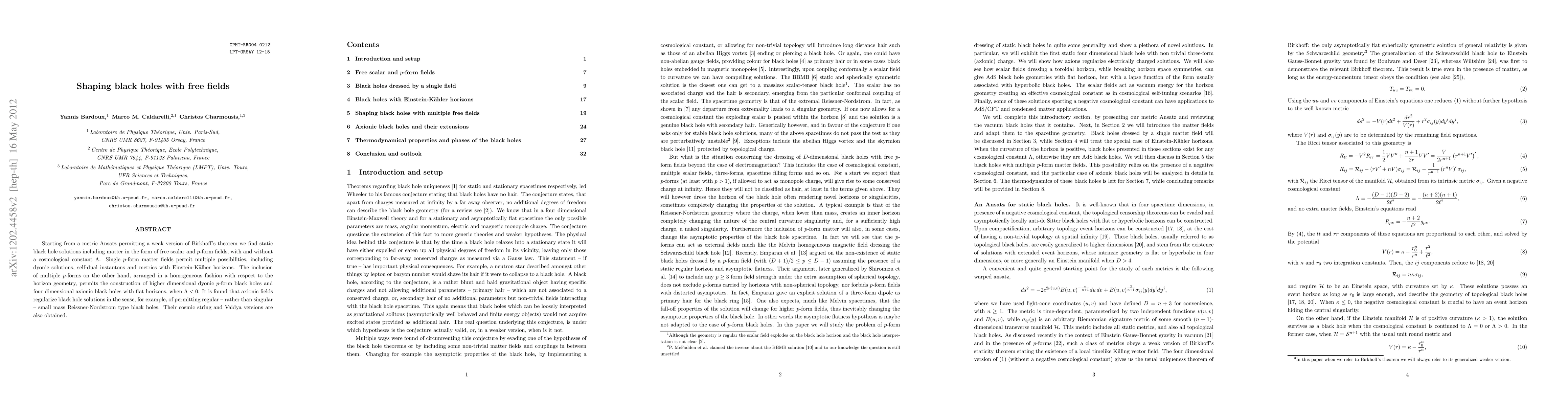 Starting from a metric Ansatz permitting a weak version of Birkhoff's theorem we find static black hole solutions including matter in the form of free scalar and p-form fields, with and without a cosmological constant \Lambda. Single p-form matter fields permit multiple possibilities, including dyonic solutions, self-dual instantons and metrics with Einstein-Kaelher horizons. The inclusion of multiple p-forms on the other hand, arranged in a homogeneous fashion with respect to the horizon geometry, permits the construction of higher dimensional dyonic p-form black holes and four dimensional axionic black holes with flat horizons, when \Lambda<0. It is found that axionic fields regularize black hole solutions in the sense, for example, of permitting regular -- rather than singular -- small mass Reissner-Nordstrom type black holes. Their cosmic string and Vaidya versions are also obtained.