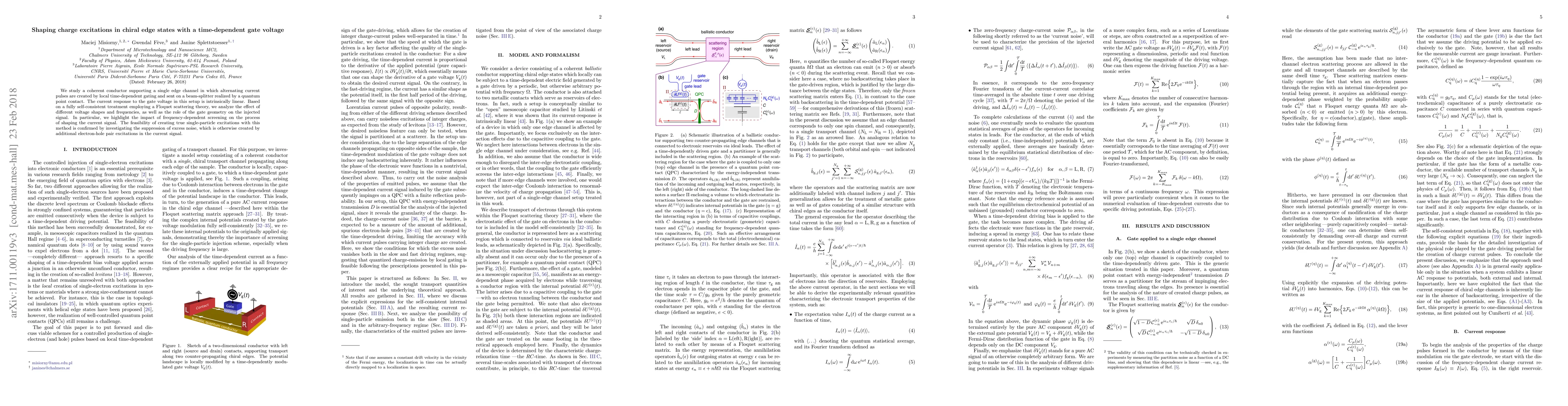 We study a coherent conductor supporting a single edge channel in which alternating current pulses are created by local time-dependent gating and sent on a beam-splitter realized by a quantum point contact. The current response to the gate voltage in this setup is intrinsically linear. Based on a fully self-consistent treatment employing a Floquet scattering theory, we analyze the effect of different voltage shapes and frequencies, as well as the role of the gate geometry on the injected signal. In particular, we highlight the impact of frequency-dependent screening on the process of shaping the current signal. The feasibility of creating true single-particle excitations with this method is confirmed by investigating the suppression of excess noise, which is otherwise created by additional electron-hole pair excitations in the current signal.