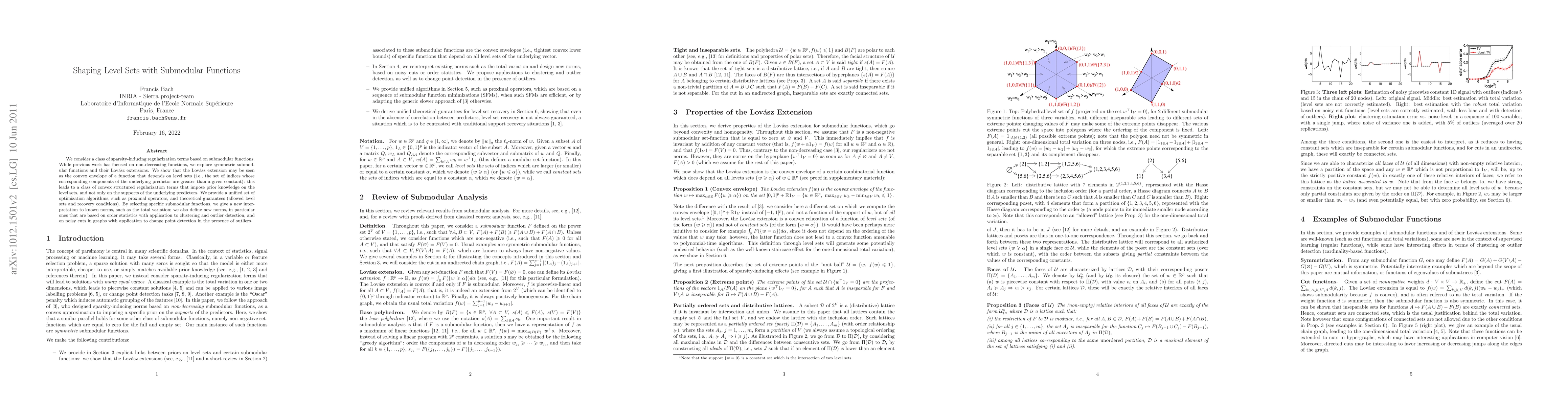 This paper introduces a novel class of regularization terms based on symmetric submodular functions and their Lovász extensions, which shape level sets rather than just supports of predictors. It provides optimization algorithms and theoretical guarantees, reinterprets known norms, and defines new norms for applications like clustering and change point detection.