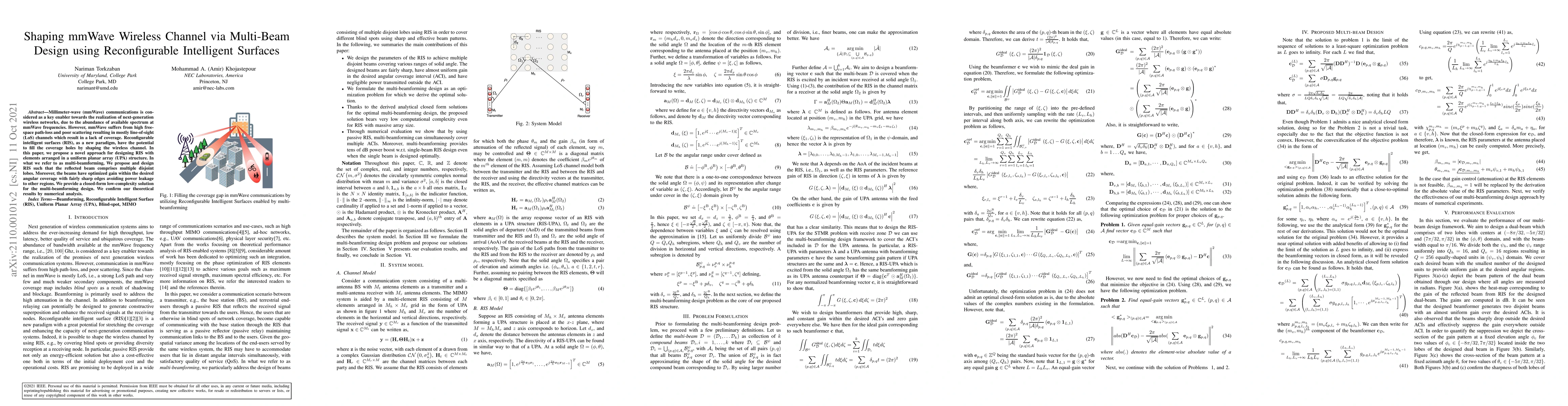 This paper proposes a novel multi-beamforming design for reconfigurable intelligent surfaces (RIS) to enhance millimeter-wave (mmWave) wireless channels, addressing coverage issues through optimized beam patterns with sharp edges and minimal power leakage. The approach uses a uniform planar array structure and provides a low-complexity solution validated by numerical analysis.