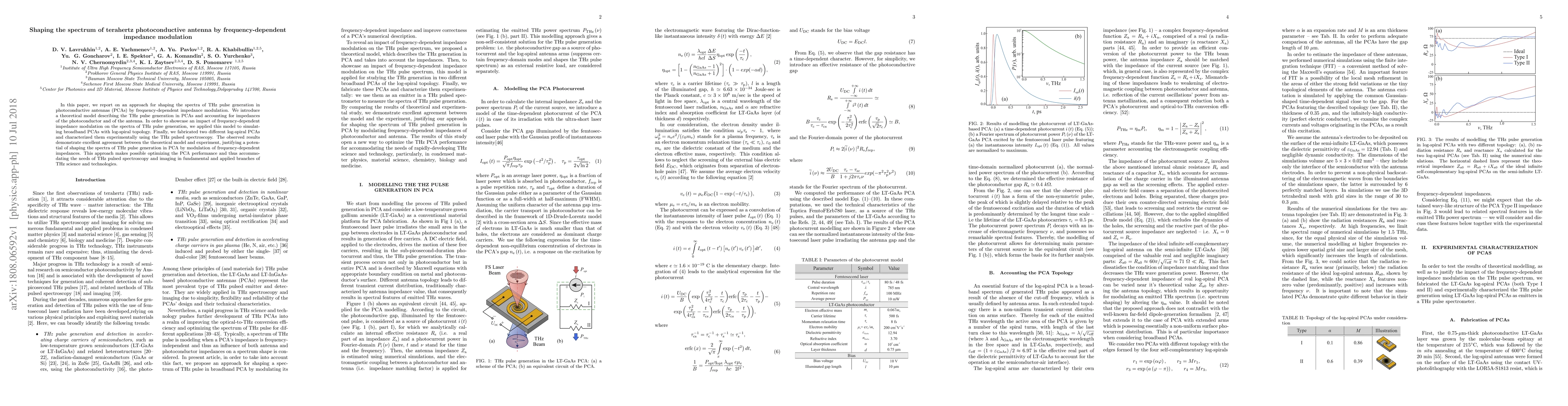 This paper presents a theoretical model for shaping the spectra of terahertz (THz) pulse generation in photoconductive antennas through frequency-dependent impedance modulation. The model's effectiveness is demonstrated via simulations and experimental validation of log-spiral PCAs, showing potential for optimizing PCA performance for THz applications.
